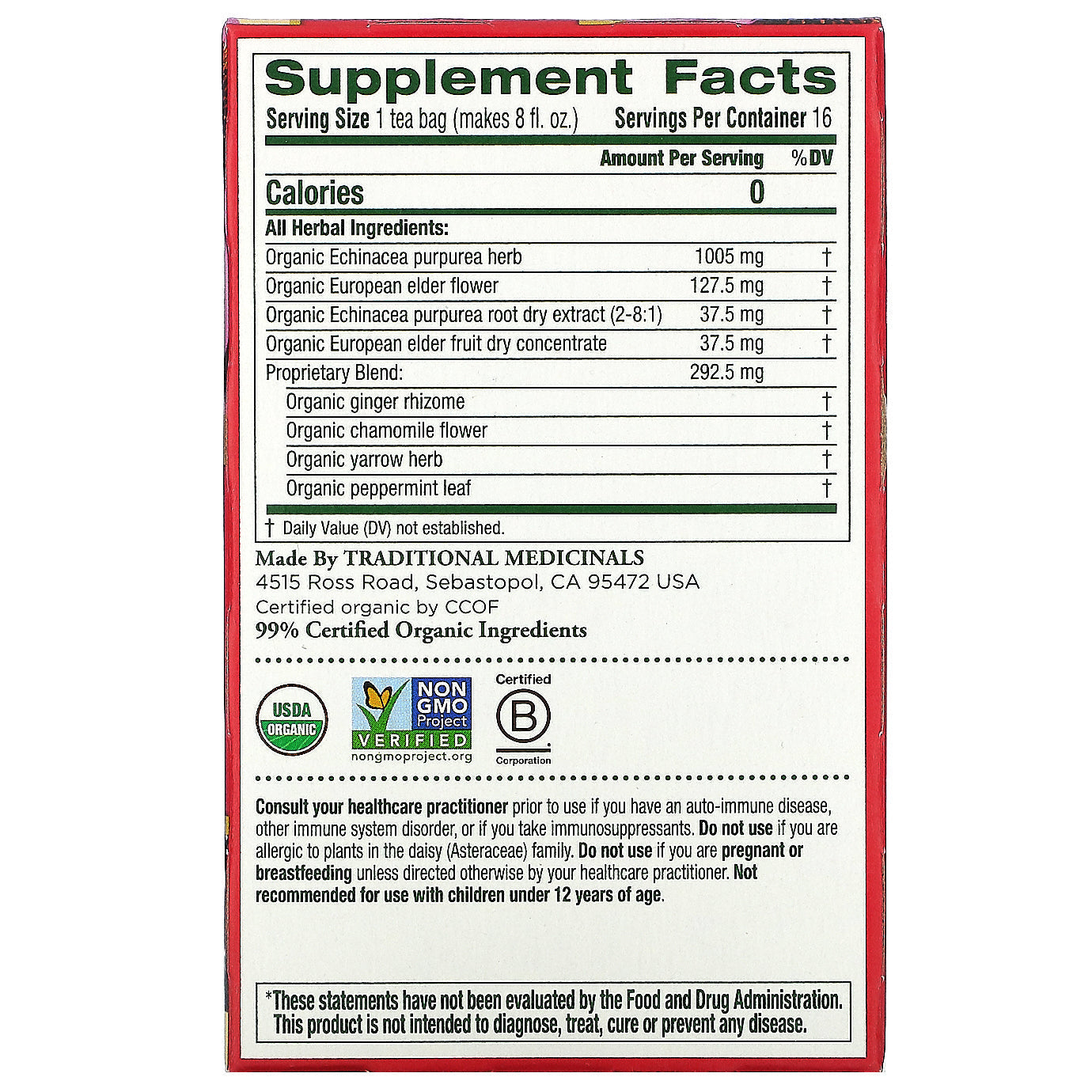 Traditional Medicinals, Echinacea Plus, Elderberry, Caffeine Free, 16 Wrapped Tea Bags, .85 oz (24 g)